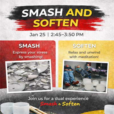 - 20-minute Smash Therapy Session (break glass only, safety gear provided) Crash Box Therapy